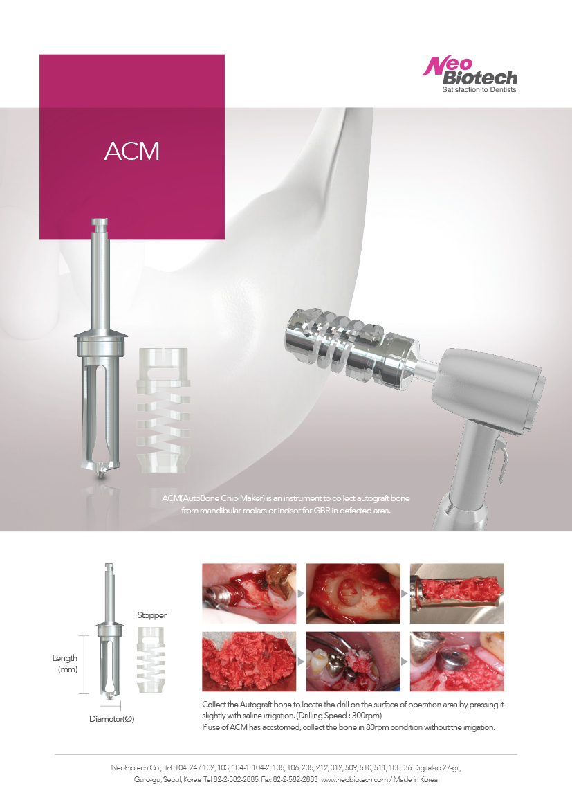ACM(AutoBone Chip Maker) is an instrument to collect autograft bone from mandibular molars or incisor for GBR in defected area.