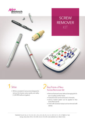 SR kit is consisted of various tools designed to remove the fracture screw quickly and safely.(1,200 RPM without irrigation)